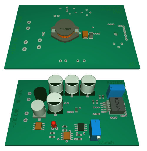 Aus einer 12 V Blei- oder Bleigelbatterie wird eine für Laptops übliche Spannung zwischen 15 V und 20 V erzeugt. Durch die direkte Erzeugung der benötigten Spannung in einem Schritt arbeit die Schaltung recht energieeffizient. Bei kritischem Niveau der Batteriespannung wird eine Notabschaltung vorgenommen, um die Batterie vor Schaden zu schützen.